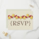 Simple et élégant Feuilles d'automne Bordure Mariage RSVP Carte Postale avec une rangée de feuilles de automne rustiques en jaune et rouge. Ce design chic est parfait pour votre mariage d'automne ! Facile à customiser, il suffit d'ajouter les détails de votre mariage dans les champs de texte fournis. Pour trouver d'autres options de personnalisation, cliquez sur "Customiser".