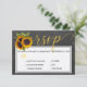 Script de calligraphie or mariage RSVP avec options de menu avec bouquet de tournesols rustiques sur arrière - plan de tableau noir gris foncé. Idéal pour l'été ou l'automne | élégant pays rustique | jardin extérieur jardin à thème mariages. — Si vous n'avez pas besoin des options de menu. il suffit de supprimer les textes correspondants dans les zones !