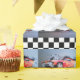 Hot Wheels Fans! Wie wäre es, wenn ein Auto durch die Wand stürzt! Rotes Auto mit Flammenanstrich bricht durch eine graue Wand. Schwarze Akzente können Sie anpassen, wenn Sie wollen.