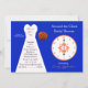 Cette invitation à la douche nuptiale 24h/24 présente du bleu cobalt et du corail. Le bouquet de rose et l'horloge apparaissent dans le corail et l'arrière - plan est bleu cobalt avec la robe mariage en blanc. Un excellent moyen pour les invitations de prendre une douche nuptiale 24h/24. Copyright henishouseo