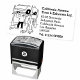 Business Briefmarke für ein Automobil-Auspuff und eine Reifengarage. Die Abbildung zeigt ein Fahrzeug auf einer Rampe, an der ein Mechaniker arbeitet. Verändern Sie den Text, um Ihr eigenes Unternehmen Anzug. Die Illustration kann für Ihr Logo geändert werden.