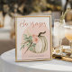 Genießen Sie Getränke in saisonaler Eleganz mit diesem Falling in Liebe mit Baby "Beverages" Tafelschild. Es ist mit einem weichen, rosafarbenen Bogen und einem cremigen Elfenbeinhintergrund gestaltet und verfügt über einen weißen Kürbis in Aquarellfarbe, der von Eukalyptus-Blätter, blütigen Rose, Pampas-Gras und Federn umgeben ist. Der warme orangefarbene Text aus Terrakotta lautet Beverages, mit anpassbarem Text unter dem sich die Details der Getränkestation oder eine persönliche Nachricht befinden. Dieses Schild eignet sich perfekt für eine Babydusche im Herbst und koordiniert wunderbar das gesamte Falling in Liebe mit der Baby-Kollektion, um ein raffiniertes, zusammenhängendes Aussehen zu schaffen.