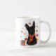 Cozy fall vibes! This cute black dog in a plaid scarf with autumn leaves makes the perfect seasonal mug for coffee or cocoa.