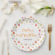 This beautiful and elegant plate features watercolor pomegranate, apples, grapes, mushrooms and foliage. The text combines handwritten script and serif fonts for a stylish and modern look. This is perfect for a rustic autumn fall birthday party.