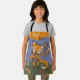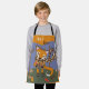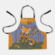 Un tablier enfant mignon avec un renard ramassant des feuilles, des glands et des champignons pour cuisiner une recette. Personnalisez-le avec le nom d'un enfant. Fait un grand cadeau d'anniversaire ou de vacances pour les enfants qui aiment cuisiner. © ArianeC Illustrations-Tous droits réservés