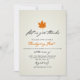 Invitation votre famille et vos amis à votre Thanksgiving Party dans le style avec cette élégante invitation Thanksgiving Party avec une seule illustration de feuille d'automne orange. Vous avez la possibilité de déplacer les éléments de conception et de modifier le libellé/la police/la couleur pour adapter également votre style.