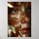 A young woman with luminous freckled skin gazes upward in soft wonder, her face gently framed by a crown of warm amber, rust, and burnt-orange autumn leaves. Golden-hour light caresses every detail—subtle veins in the foliage, delicate freckles across her cheeks, and the natural sheen on her full lips—while creamy bokeh in the background creates intimate focus and dreamlike softness. The portrait radiates seasonal tenderness, quiet introspection, natural beauty, fragile harmony between human and fall, and the gentle magic of fleeting moments—perfect for cozy bedrooms, reading nooks, therapy spaces, autumn-themed living rooms, minimalist fall decor, or as heartfelt gifts for nature lovers, romantics, or anyone who finds peace and poetry in autumnal elegance and quiet strength.