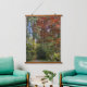 Decorate a living space with this vertical, hanging wall tapestry with wooden tops that features the photographic image of a forest path with colorful shades of maple tree leaves, primarily orange. A lovely, botanical image!