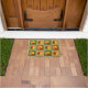 Vier Plätze sind mit Blätter und Kürbissen in den Farbtönen Rot, Orange, Gelb und Braun dekoriert. Die weiße Naht fügt eine dekorative Touch hinzu, die dem sich wiederholenden Muster das Aussehen eines Steppdecks verleiht und ein sehr gemütliches Gefühl für den Herbst schafft.