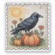 Autumn Raven on Pumpkin Halloween Postage Stamp Aufkleber