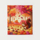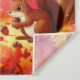 Ein lebendiges Design mit einem Eichhörnchen inmitten eines bunten Herbstwaldes mit fallenden Blätter und verstreuten Eichhörnchen, das an die gemütliche Essenz des Herbstes erinnert.