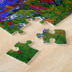 Un clocher d'église classique s'élève au-dessus de brillants arbres d'automne sur ce puzzle vintage-américain.