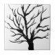 Schwarzweißlinenprint der Silhouette eines Herbstbaums.