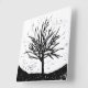 Schwarzweißlinenprint der Silhouette eines Herbstbaums.