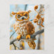 Eine wunderschön gearbeitete Filzheule, die auf einem stabilen Zweig steht und aufwändige Federdetails und einen weisen Ausdruck zeigt. Die handgefertigte Textur verleiht dieser Waldlandschaft Wärme.