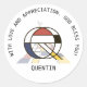 Verführerisches, lustiges, künstlerisches Monogramm. Hier ist der Buchstabe "Q". Neoplastischer Stil, oder De Stijl, Linie und Farbe künstlerische Dekoration, der lustige Vogel sitzt auf dem Brief. Das Kunstfeld befindet sich unter dem Buchstaben. Der Vorlagenname "QUENTIN" befindet sich unter dem Bild. "Mit Liebe und Wertschätzung. Gott segne dich!" Der Text geht um das Bild. Sie können alle Texte ändern oder löschen und das Bild ändern. Einzigartiger, einzigartiger Aufkleber für Sie. Sie können dieses Design auf eine Reihe von Produkten übertragen. Sie können die Schaltfläche "Design bearbeiten" oder "Anpassen" (ggf.) der blauen Farbe verwenden, um den Schriftart, die Farbe oder die Position des Bildes und des Vorlagentextes zu ändern. Seien Sie kreativ, passen Sie sich an, kaufen Sie eins und seien Sie glücklich!
