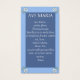 Eine Gebetskarte mit der lateinischen Übersetzung von Hail Mary. Die Rückseite der Gebetskarte ist das Gemälde von Sandro Botticelli der Jungfrau Mary und des Christ-Kindes.