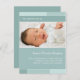 "With Joy" bleu & faire-part de naissance photo aqua. Personnalisez ce modèle de carte postale moderne et élégant avec la photo de votre petite fille et les détails pour une faire-part de naissance unique.