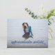 Cette faire-part complète de graduation photo saignée et l'invitation comprend les mots "aventures attendent" en bleu. Il a de l'espace pour les détails de votre diplômé sur le devant avec encore plus de place pour le texte sur le dos de la carte.