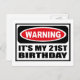 Attention C'EST MA 21E ANNIVERSAIRE Carte postale vous pouvez customiser à www.WarningSignShirts.com et comporte un panneau rouge et noir d'avertissement et C'EST MA 21E ANNIVERSAIRE en lettres noires en gras pour avertir le monde. Vous pouvez également customiser votre propre panneau d'avertissement Carte postale avec le texte que vous voulez.