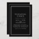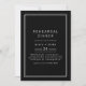 Dieses Dinner der Probe-Einladung aus der Avery Suite besticht durch einen dunkelschwarzen Hintergrund, einen schmalen, weißen Doppelrahmen und einen sauberen serifenlosen Sans. Es schafft ein modernes, gepflegtes Aussehen, das sich an die Sehenswürdigkeiten, Galerien und Hochzeiten im Abend anpasst.