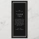 Dieser Hochzeitstisch mit Dankeschön-Karte aus der Avery Suite verfügt über einen dunkelschwarzen Hintergrund, einen schmal weißen Doppelrahmen und einen sauberen serifenlosen Sans. Es schafft ein modernes, gepflegtes Aussehen, das sich an die Sehenswürdigkeiten, Galerien und Hochzeiten im Abend anpasst. Platzieren Sie diese Karten für jeden Ihrer Gäste am Hochzeitsempfang. Personalisieren Sie die Karte mit Ihren Namen und einer besonderen Danksagung.