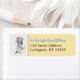 Dieses Adressetikett koordiniert mit den unten abgebildeten Babyduschfiguren und zeigt einen grauen Wolf, der ein grünes Flugzeug hält, während er einen grün-blau gestreiften Schal trägt, sowie einen Vintagen Aviator, der mit einer Brille auf einem hellgrauen Hintergrund versehen ist. Die Rücksendeadresse ist blau und grau in zwei verschiedenen Schriftart der Einladung gedruckt und auf einem gelbfarbenen Hintergrund gedruckt.
