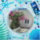 Weiß gekalktes Haus mit einer dekorativen Bougainvillea im Dorf Avlemonas auf der Insel Kydura