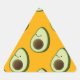 Ein Avocadomuster im Stil eines Cartoon auf einem orangefarbenen Hintergrund. Originelles Design.