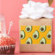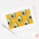 Ein Avocadomuster im Stil eines Cartoon auf einem orangefarbenen Hintergrund. Originelles Design.