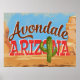 Avondale Arizona neo Vintage Reise Poster Wand Kunst im Cartoon Retro-Stil mit der Wüste, ein Kakteen und Rot-Rock-Umgebung.