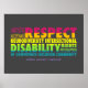Das Bild ist eine Wortgruppe in regenbogengestreiften Buchstaben der Hauptstadt: autistische Akzeptanz, Respekt, Neurovielfalt, Querschnittsaufgabe, Behinderungsrechte, Kompetenzvermutung, Inklusion, Gemeinschaft. Hintergrund ist schwarz.