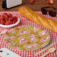 Rosa Axolotls und Liebe Herz auf Senfboden