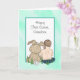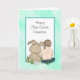Un petit garçon doux dessiné à la main assis à côté d'un gros lapin farci. Cette carte dit petit-fils mais vous pouvez personnaliser le texte avec un nom ou un membre de famille différent.