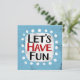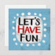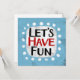 "Let's Have Fun" est un design de texte mignon en bleu clair avec du texte en noir et rouge, avec une forme d'accent blanc et des points blancs texturés blancs qui l'entourent.