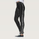 Schwarze Leggings mit einem Zierstreifen an der Außenseite jedes Beins.