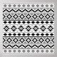 Design beeinflusst durch Aztec Stil Muster in einer vektormodernen digitalen Interpretation mit schwarz, grau und weiß Details auf einem weißen Hintergrund.