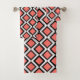 Nahtlose geometrische Azteken-Mustervorlage in Weiß, Schwarz, Grau und Korallen