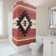Aztekisches ethnisches Böhmisches Muster mit geometrischen Formen in Rot, Orange, Grau und Schwarz auf gestreiftem Hintergrund