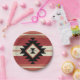 Aztec ethnisch-böhmisches Muster mit geometrischen Formen in Rot, Orange, Grau und Schwarz auf gestreiften Hintergrund