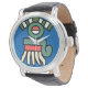 Uhr, Vintage Männeruhr mit schwarzem Lederarmband