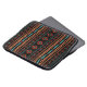 Aztec beeinflusste Muster in rostfarbigen Symbolen/Motiven und auf schwarzem Hintergrund aquamarines Licht. V = Vertikalmuster.