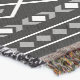 Aztec beeinflusste Formen und Linienmuster in grau-weißen Details auf schwarzem Hintergrund.