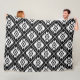 Aztec Symbol Stylisierte Muster Weiß auf Schwarz Fleecedecke