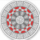 Ein einfaches geometrisches Muster auf der Außenseite, das zum Teil durch die alten Azteken-Entwürfe inspiriert wird, umschließt eine Alien-Thematisierungsebene, eine Gradientenschicht und eine einfache Squiggle-Ebene in diesem kreisförmigen Design.