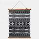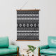 Aztec White on Black Mixed Motifs Pattern Wandteppich Mit Holzrahmen