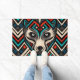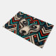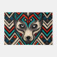 Das ist ein handgefertigtes, dekoratives Wolfsgesicht mit Azteken-Mustern in den Farben Schwarz, Rot, Türkis und Beige.