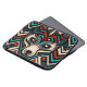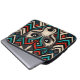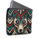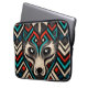 Das ist ein handgefertigtes, dekoratives Wolfsgesicht mit Azteken-Mustern in den Farben Schwarz, Rot, Türkis und Beige.