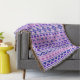 Ein aztekischer Artentwurf in einem digitalen und vector Muster mit rosa, blauem und lila Detail über einen hellrosa Hintergrund.