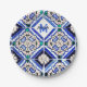 Azulejo Spanish Pattern Tiles Navy White Monogram Pappteller